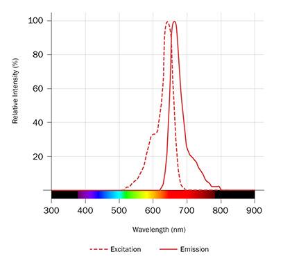 Sulfo-Cy5 NHS酯激发波长为 649nm,发射波长为670nm。